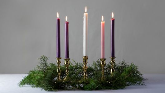 We light candles representing hope, peace, joy, and love leading to the lighting of the Christ candle.
